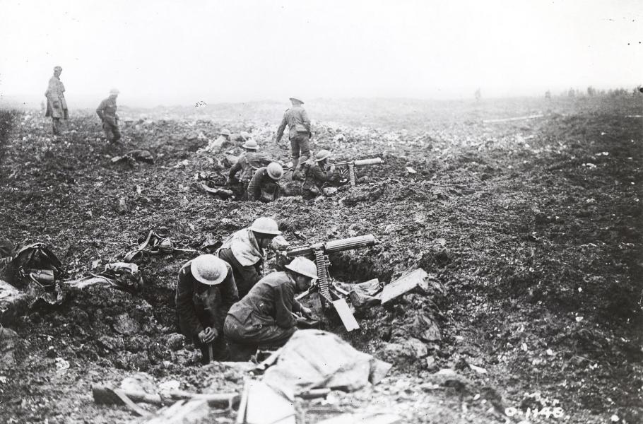 Kanadští kulometčíci během bitvy u Vimy, někteří důstojníci je trestali například jen za bláto na kalhotách. (foto: Wikimedia Commons, Library and Archives Canada, CC0)