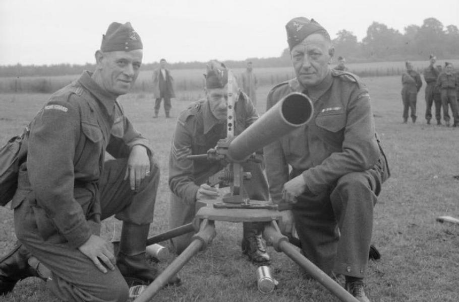 Příslušníci britské domobrany často nebyli z Northoverova vrhače nadšeni, jenže nic účinnějšího v té době zkrátka nebylo k dispozici. (foto: Wikimedia Commons, Imperial War Museums, IWM Non-Commercial Licence)