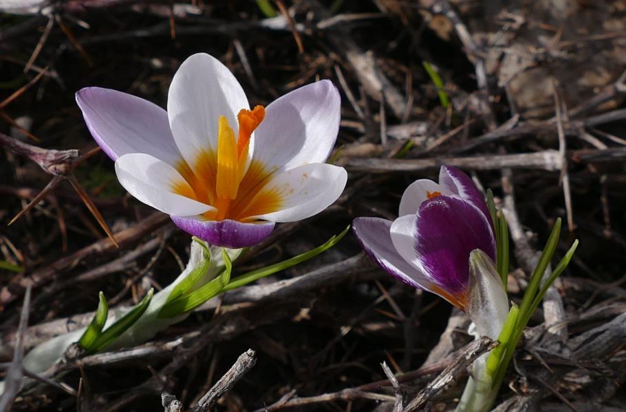 V podhůří „Bílých hor“ se nachází náhorní planina Omalos (1 100 m n.m.), která byla v době naší návštěvy plná divokých tulipánů (Tulipa bakeri) a sasanek věncových (Anemone coronaria) ve všech možných barevných odstínech: od bílé, přes bleděmodrou, růžovou, červenou až po fialovou. Sasance věncové se též říká Jeruzalémská. Jedná se totiž o biblickou květinu, která je zmiňována v Šalomounově Písni písní. Zajímavé je, že tyto květiny jsme viděli jen za plotem, protože jinde byly zřejmě spasené od všudypřítomných koz. Měli jsme možnost spatřit také nízkou Romuleu bulbocodium s bílými květy a žlutými středy, která ani nemá české pojmenování.