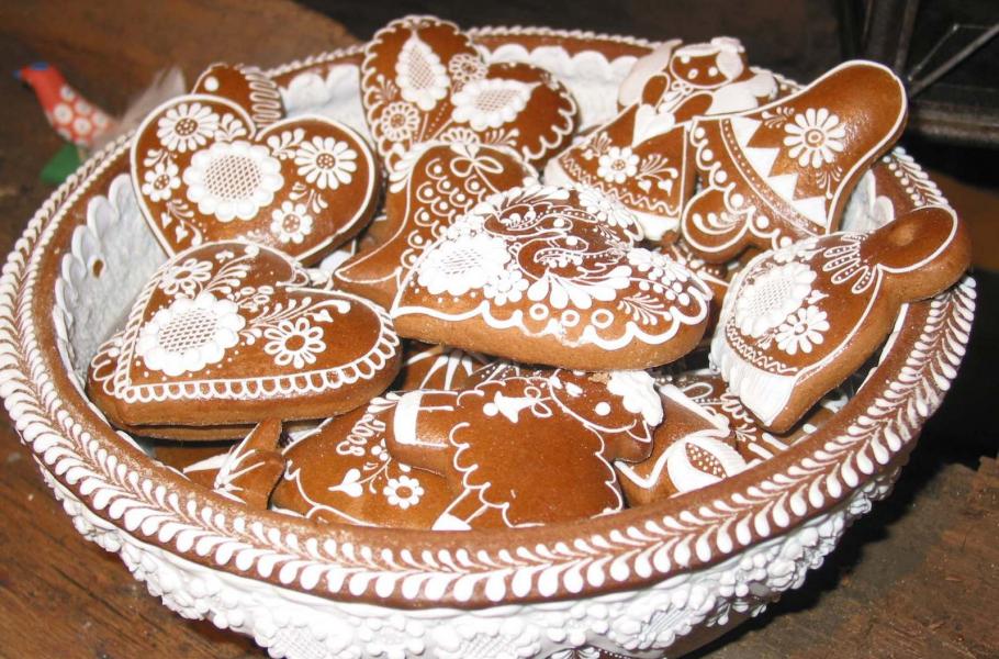 Až kýčovitě nazdobená srdíčka, kadibudky komentující politickou situaci nebo koňské hlavy se smutným psím pohledem. A samozřejmě obří srdce se jmény a zamilovanými nápisy. Všechny perníkové pochoutky vznikají stejně: smíchá se mouka, cukr, vajíčka, olej, koření a kakao a pak přijde na řadu přísada ze všech nejdůležitější – med, který perník zalepí a zakonzervuje tak, že si na něm můžete pochutnat i po několika měsících. Klášterní mniši navíc do receptu v dávných dobách zahrnovali i pepř, neboť perník pak lahodil jejich chuťovým pohárkům při popíjení mešního vína.