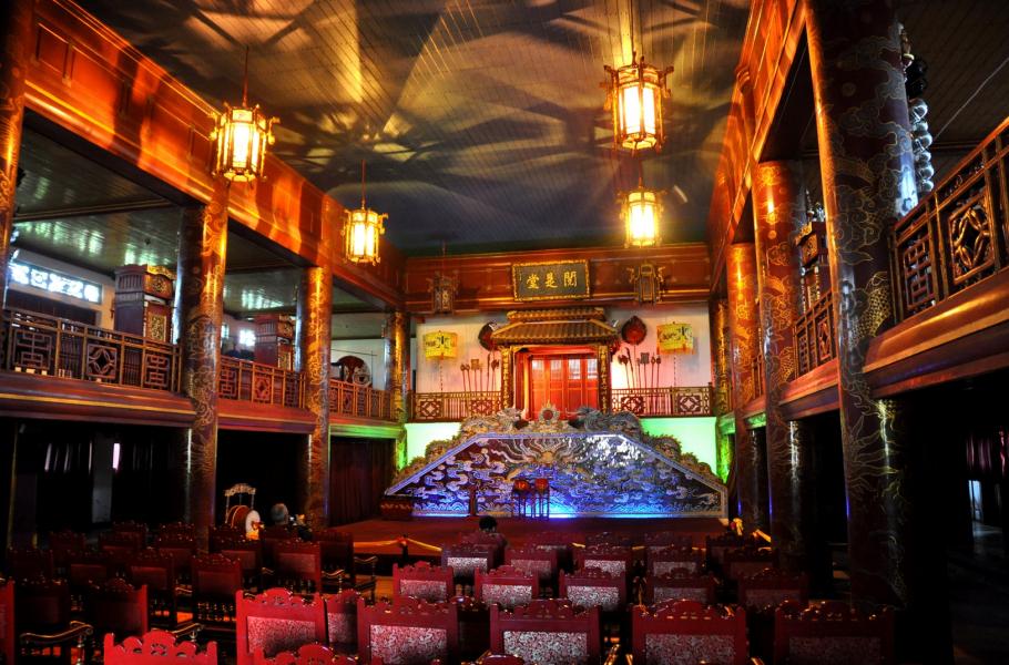 Sídlo Thai Hoa dostalo přezdívku Palác harmonie a jistý soulad tu skutečně pocítíte. Podlouhlé zašpičatělé stříšky zdobí kamenní draci jako ochránci, před paláci se rozprostírají barevné záhony a z keramických květináčů vyrůstají bonsaje. Osmdesát lakovaných sloupů podpírá střechy, pod nimiž se ukrývají soukromé komnaty císaře. Většinu stěn krášlí barevné fresky: na první pohled působí jednoduše, ale jejich krása tkví v jemných detailech, ornamentech, kaligrafii a geometrických vzorech. V jedné z místností stojí i trůn, na kterém prý sedával samotný císař. Nosíval opulentní róbu prošívanou zlatem a zdobenou vzácným jadeitem a na hlavě klobouk s devíti draky.