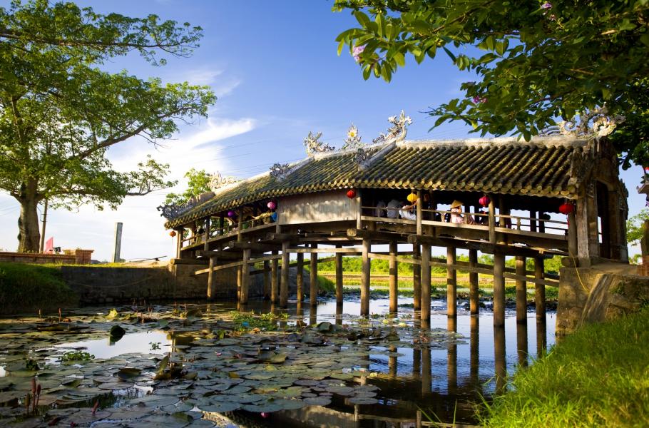 Mezi největší speciality místních jídelen patří tradiční polévka Pho Bo – hovězí vývar dochucený zázvorem, čerstvými klíčky, bylinkami a chilli. Vietnamci se zastaví, sednou si, hůlkami snědí všechno tuhé, zbytek vypijí a už se opět proplétají na motorce dál. Večer se pak oba mosty ve starém městě rozsvítí a ruch ulice neutichá, naopak – s přibývajícími hodinami pulzuje život stále silněji.