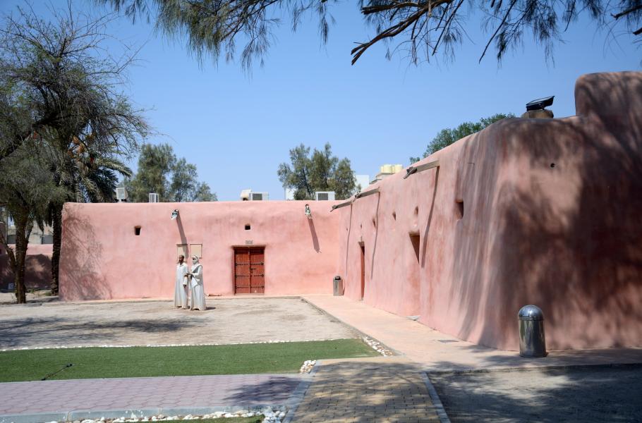 Uprostřed města se tedy zničehonic vynoří červené hradby, hlídané několika starými děly, a za bránou se ocitnete na prázdném nádvoří. Stojí tam pouze několik figurín pro dokreslení atmosféry a studna. „Nikdy v ní nebyla pitná voda. Vždycky měla slanou chuť, ale pokud se smíchala se sladkými datlemi, neublížila,“ líčí správce muzea. V jednotlivých místnostech pevnosti se dnes nachází etnografická sbírka s věcmi a tradicemi, jež skončily pohřbené pod nánosem éry černého zlata.