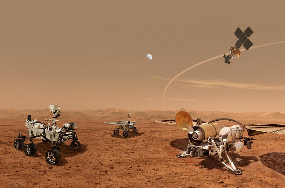 Mars Sample Return je plánovaná vysoce komplexní robotická mise k planetě Mars, která by měla dopravit zpět na Zemi vzorky marsovské horniny. (foto: NASA/ESA/JPL-Caltech, CC0)