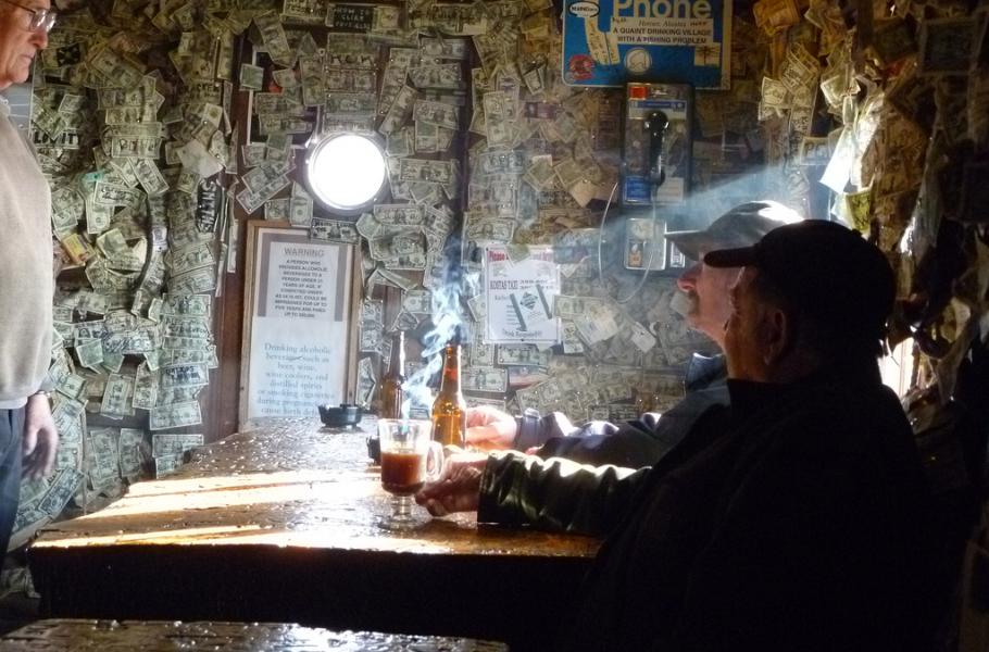 Zdání klame: Zaplivaný aljašský bar je vytapetovaný dolarovými bankovkami