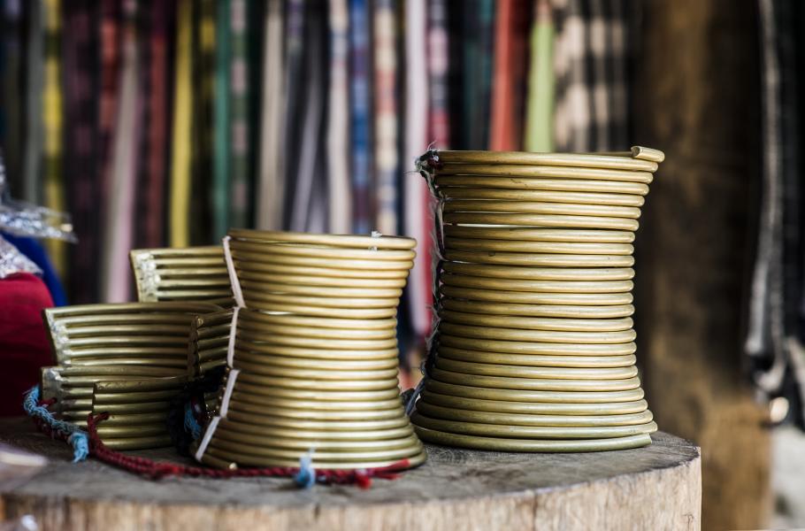 Dnes třiaosmdesátiletá Maria Khaing je jednou z nejstarších obyvatelek vesnice Pan Phet. Na sžívání s mosaznými ozdobami vzpomíná takto: „Začala jsem je nosit, když mi bylo osm. Táta žertoval, že vypadám jako kluk, a chtěl mi koupit zbraň, abych mohla lovit jako muži. Ale já mu řekla, že každá holka nosí kruhy a já je chci taky.“