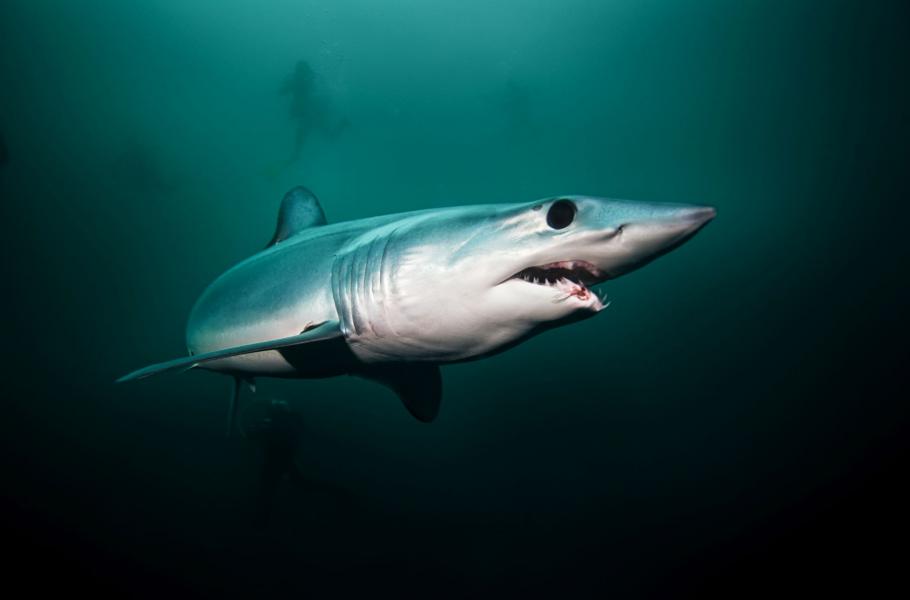 Najednou z hlubin připlouvá jiné, rychle se pohybující tělo dalšího tvora. Rychlé až zbrklé pohyby ukazují, že dnes máme opravdu velké štěstí. Naše návnada totiž přilákala nejrychlejšího žraloka světa – žraloka mako (Isurus oxyrinchus). Vzácný druh, který křižuje teplejší vody světových oceánů, se málokdy ukáže na návnadu. Zástupce dvou druhů, kteří nyní plavou vedle nás, je poznat na první pohled: Tvar těla a pohyb je zcela odlišný.