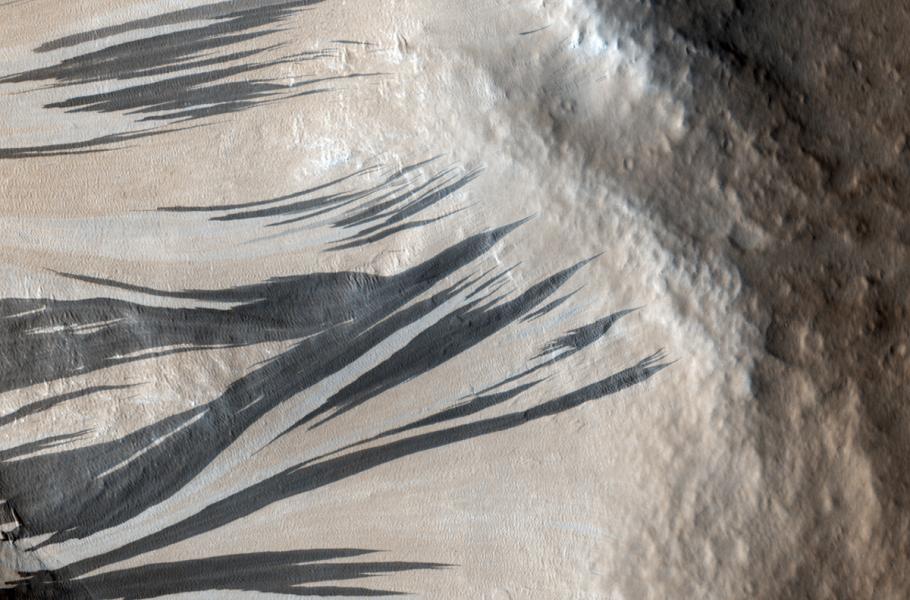 Na některých místech Marsu jsou patrné pozoruhodné tmavé pruhy. Tyto pruhy se v roce 2015 dostaly do světových médií, když je odborníci prohlásili za přesvědčivé stopy působení tekoucí vody na Marsu. Colin Dundas z centra Astrogeology Science Center v arizonském Flagstaffu a jeho spolupracovníci ale v těchto dnech publikovali výzkum, podle něhož tmavé pruhy na Marsu vlastně žádnými stopami tekoucí vody nejsou.