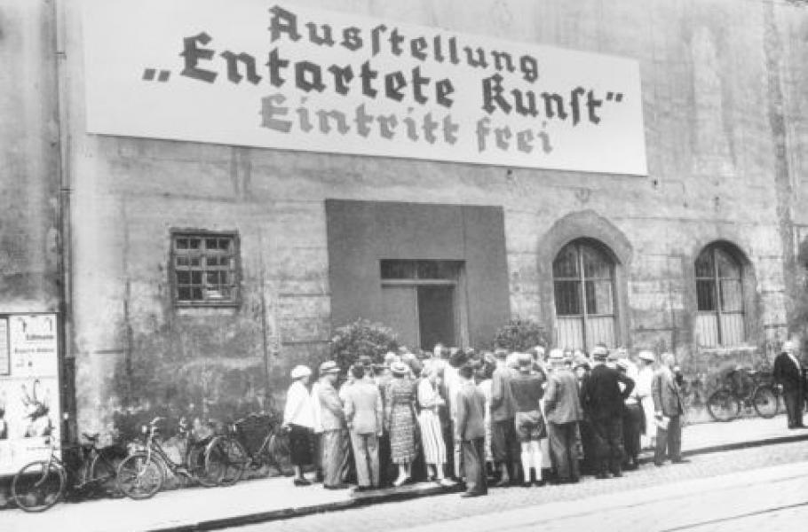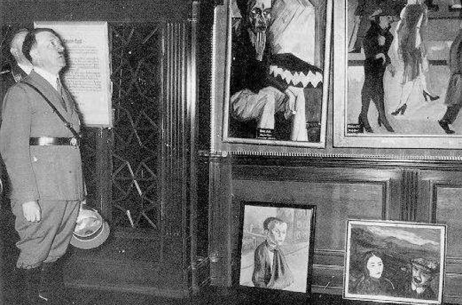 „Krásu árijského ducha je třeba očistit od špinavého avantgardního umění plného pesimismu a pacifismu,“ hřímá Hitler při jednom ze svých projevů. Umělce, jejichž díla neodpovídají nacionálně-socialistickým ideálům, nebo jsou dokonce židovského původu, fašisté nemilosrdně pronásledují. Jejich díla jsou odstraněna z muzejních sbírek, veřejně pálena nebo zabavena a prodána do zahraničí.