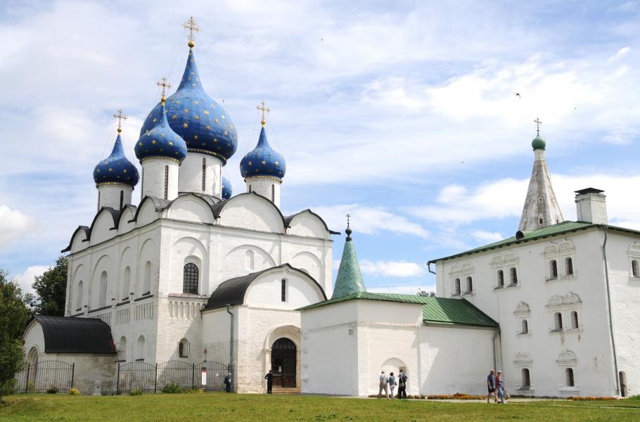 Nejstarší částí města je ovšem suzdalský kreml s charakteristickými modrými věžemi. Na konci 11. století jej nechal zbudovat Vladimir Monomach a také díky němu dnes patří Suzdal k architektonicky nejvýznamnějším sídlům země. Modré kupole zdobené zlatými hvězdami zastřešují interiéry s množstvím ikon a obrazů. Venku vede přes říčku dřevěná lávka, nedaleko několik babiček prodává angrešt, jahody, maliny, kvašené okurky a další dary přírody. Nechybí ani místní nápoj medovucha, s pronikavou chutí medu a troškou alkoholu.