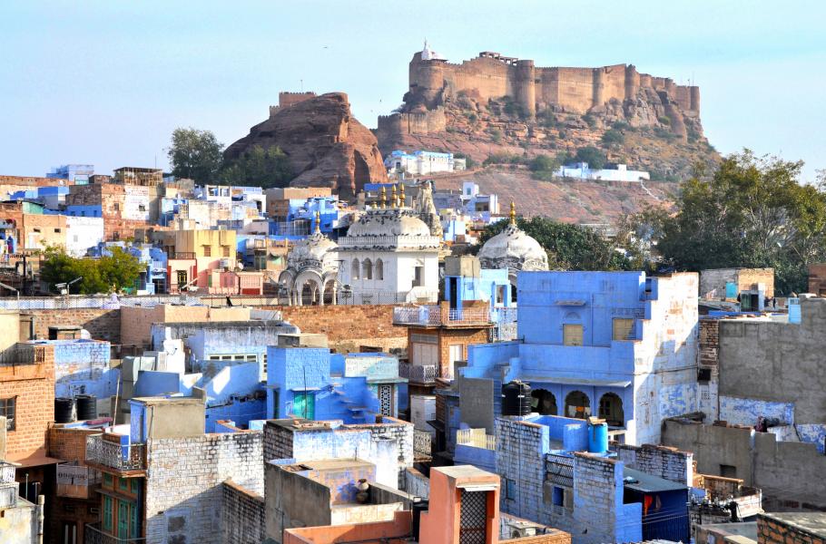 Džódpur se pomalu probouzí do nového dne a už od časného rána se ulice začínají zaplňovat lidmi. A nejen těmi – pozorné oko si všimne i opic, poskakujících ze střechy na střechu, aby si našly něco na zub. Pevnost Mehrangarh se zvedá nad domy starého města a působí jako obrovský magnet. Každého k sobě po čase stáhne, ať se v Džódpuru nachází kdekoliv. Domky, natřené typickou pronikavě modrou barvou, vrhají do ulice příjemný stín. Ne všechny domy Džódpuru jsou modré, ale tato barva k městu neodmyslitelně patří, a proto se mu přezdívá Modré město.