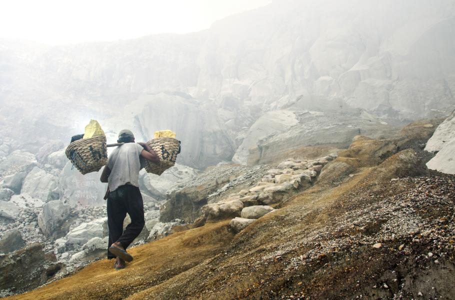 Vulkán Ijen na indonéském ostrově Jáva představuje unikátní přírodní fenomén, který obdivují stovky turistů denně. Odvrácenou stranou mince je tamní manuální těžba síry, za niž horníci tvrdě platí zničeným zdravím: Průměrně se dožívají padesáti let. Síra se v místě oficiálně těží od roku 1968 a od té doby tam již zemřelo přes sedmdesát horníků – často na udušení toxickými výpary. Protože se však v regionu mnoho jiné práce nenabízí, přijímají muži svůj úděl s klidem a úsměvem.