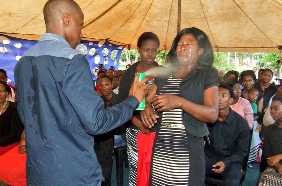 Slepým a chromým se vrací zrak i ztracený cit v končetinách, němí pronášejí první slova… K mnoha podobným „zázrakům“ stačí na náboženských sešlostech trocha transu a dotek „vyvoleného“. Jihoafrický pastor Lethebo Rabalago však na své ovečky rozprašuje insekticid.
