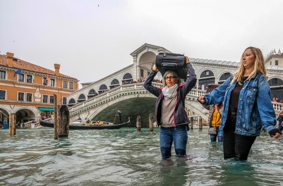 Každoročně mezi říjnem a březnem se nad Benátkami vznáší hrozba záplav. Vinou nízkého atmosférického tlaku, přílivu a jihovýchodního větru jugo vznikajícího nad Saharou se ulice i náměstí italské metropole nepravidelně, ale relativně často ocitají pod vodou. S globálním oteplováním se navíc situace rok od roku zhoršuje: V listopadu 2019 hladina dokonce zalila 90 % města. Nápravu vzniklých škod obvykle pokryjí příjmy z turismu. Pandemie koronaviru a následný úpadek cestovního ruchu však Benátky srazily na kolena.