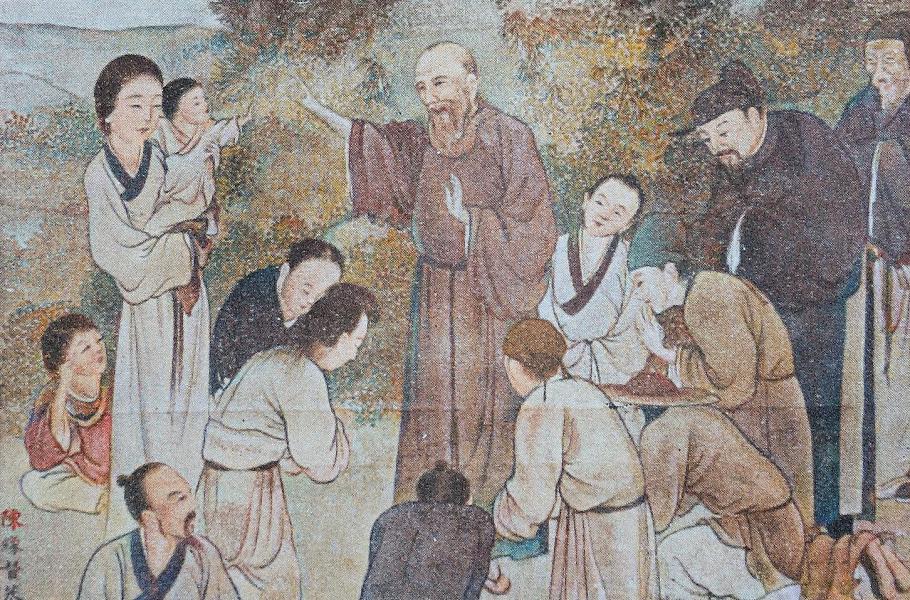 Blahoslavený Odoric z Pordenone vyučuje čínské křesťany. (ilustrace: Wikimedia Commons, PDM 1.0)