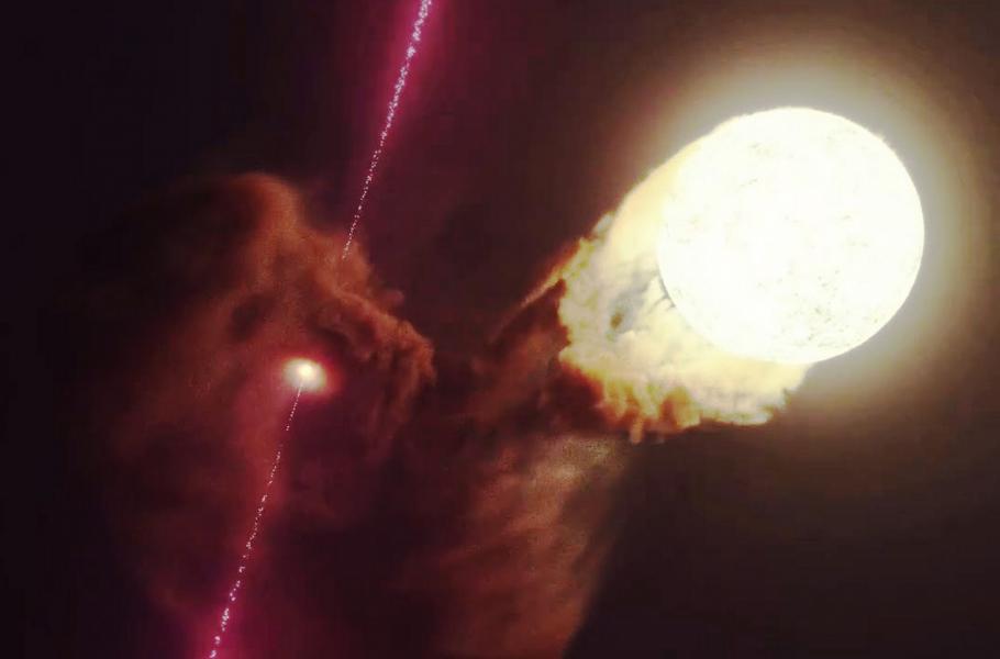 Vizualizace mikrokvazaru SS 433 ze souhvězdí Orla. (ilustrace: NASA.APOD, DESY, Science Communication Lab, CC BY 4.0)