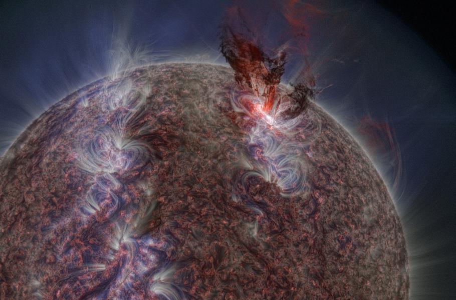 Mohutná erupce na Slunci 7. června 2011, jejíž obraz byl vytvořen matematickou metodou PM-NAFE z dat sondy SDO. (foto: ESO, Miloslav Druckmüller, CC BY-SA 4.0)
