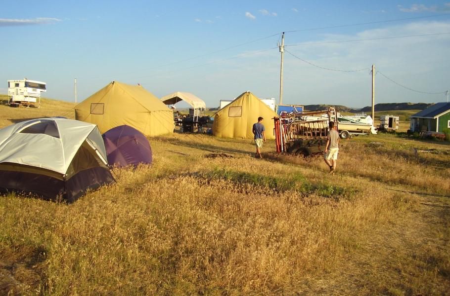 Paleontologický tábor tvoří obvykle jediný domek, k němuž vás uprostřed divočiny nasměruje osamělá řada sloupů s elektrickým vedením. Poštovní schránka takovéto „usedlosti“ se může nacházet klidně i deset kilometrů daleko – jednoduše u nejbližší silnice. V Montaně se navíc bude naleziště velmi pravděpodobně rozkládat na pozemku některého z mnoha farmářů, mezi něž se tamní neúrodná půda rozdělovala po obrovských kusech. Dodnes je přitom z četných nálezů obsidiánových hrotů šípů zřejmé, že se původně jednalo o indiánská loviště.