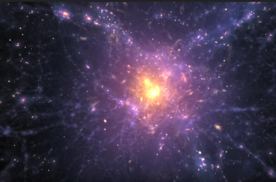 Jak se vznikl vesmír? Odpověď hledá nová animace NASA a Národního střediska pro superpočítačové aplikace. Simulace zachycuje vývoj zhruba 100 miliónů světelných let a začíná přibližně 20 miliónů let po Velkém třesku až do současnosti. Po hladkém začátku začíná gravitace způsobovat shlukování hmoty a vznikají první galaxie. Některé poté kondenzují do dlouhých vláken, zatímco jiné se bouřlivě slučují do obřích a horkých galaktických kup.