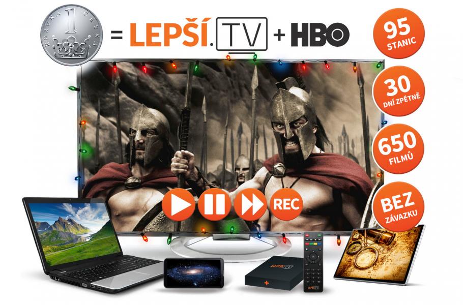 Nyní Lepší.TV přichází se skvělou možností, jak zažít všechny výhody sledování televize přes internet. Vánoční nadílku v podobě služby Lepší.TV společně se stanicemi HBO, HBO2 a HBO3 (+ videotékou HBO GO) si můžete vyzkoušet na jeden měsíc jen za 1 Kč, a to bez jakýchkoliv podpisů a smluv. Po vypršení tohoto období, bude pak jen na Vás, zda budete chtít ve sledování Lepší.TV, popřípadě stanic HBO, pokračovat či nikoliv.