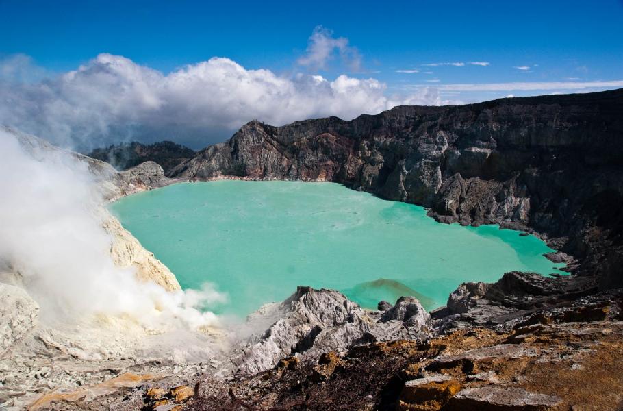 V kráteru Kawah Ijen ve východní části indonéského ostrova Jáva se skrývá jeden ze světových přírodních unikátů. Zdejší rezervoár je totiž s pH 0,4 nejkyselejším jezerem na světě – jde vlastně o teplý roztok koncentrované kyseliny sírové.