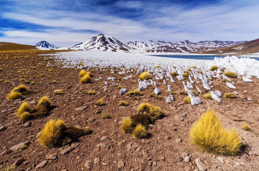 Pro začátek zamiřte třeba k pozůstatkům dávných moří, z nichž se uchovala sotva pár desítek centimetrů hluboká, extrémně slaná voda v lagunách. Nebo jde naopak o mocnou vrstvu soli, obsahující mimo jiné lithium: Na Salar de Atacama spočívá třetina jeho světových zásob. Pokud se však na solné pláně vypravíte, musíte počítat s extrémními teplotami. Pražící slunce nedá nikomu nic zadarmo a srážek tam ročně spadne doslova jen pár milimetrů.