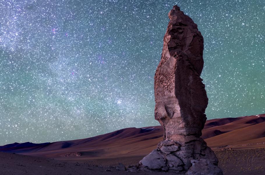 Dál na sever pak zavítáte do oblasti, kde zhruba před čtyřmi miliony lety vybuchl supervulkán La Pacana. Vyvržený prach a láva pokryly území o rozloze bezmála 8 000 km², což odpovídá asi desetině České republiky. Eroze postupem času vymodelovala ze sopečné směsi až třicetimetrové pilíře, jejichž siluety připomínají mnichy – a podle toho také získaly španělský název Monjes de la Pacana.