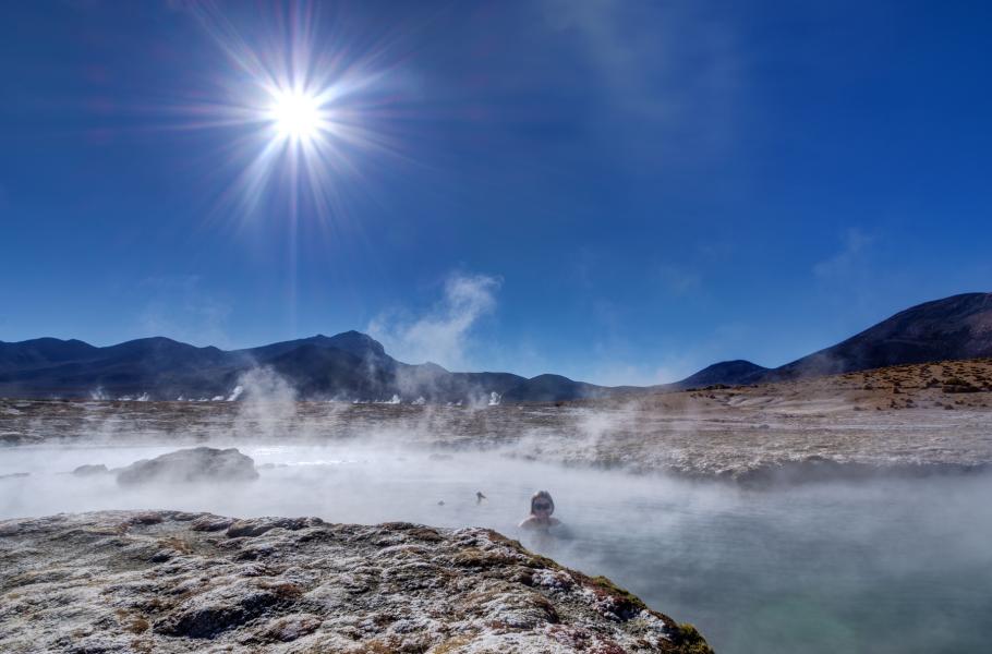 Doklad tektonické aktivity na Altiplanu tvoří vedle sopek i gejzíry, fumaroly neboli průduchy páry a vulkanických plynů a jezírka s vodou tak horkou, že se musíte koupat dál od vývěru. Jakmile se však ocitnete v termálním pramenu, zatímco teplota vzduchu se bude v nadmořské výšce přes 4 000 m pohybovat okolo nuly, nejspíš už nebudete chtít ven.