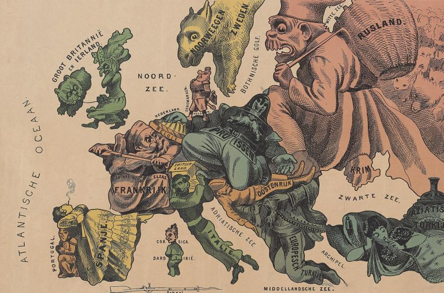 Humoristická mapa z roku 1870 zachycuje říše v Evropě a na Blízkém východě. (ilustrace: Wikimedia Commons, CC0)