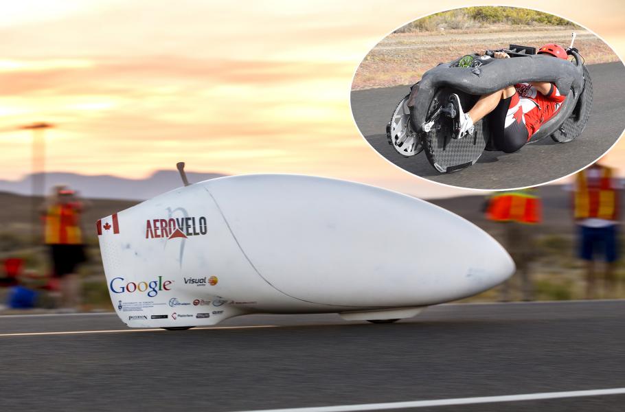 Kanaďan Todd Reichert se vyplétá z futuristického kola strhaný, ale spokojený. Přijímá gratulace k opětovnému překonání světového rekordu a rozdává rozhovory. „Stalo se to strašně rychle,“ popisuje, „během první minuty jedete víc než sto kilometrů v hodině a pak už prostě letíte.“ Se svým bicyklem nakonec uháněl rychlostí 144,17 km/h.