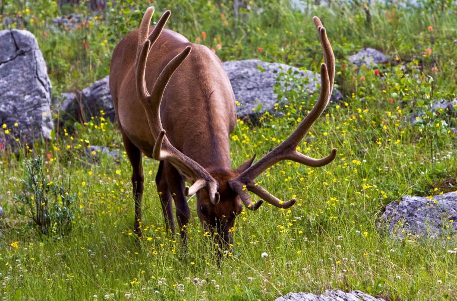 Sledovat první paprsky slunce, jak dozlatova barví dominantní vrcholy nad Banffem, je zážitek k nezaplacení. Ani na opačné straně stojící Mount Rundle se nedá zahanbit a vypadá jako zosobněná horská důstojnost. Sluneční kotouč se během pár minut vyhoupne nad obzor a já se s krásným pocitem vracím do motelu pro zbytek výpravy. Návštěva Minnewanka Lake a setkání se statným jelenem mi opět dočerpávají emocionální baterie. Odpoledne využíváme komfortní lanovku a vyjíždíme na Sulfur Mountain (Sírovou horu), odkud je nádherný výhled do celého údolí řeky Bow.