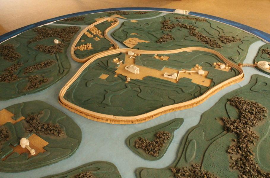 Maketa moravského hradiště u Mikulčic, které bývá často ztotožňováno s bájným Veligradem. (zdroj: Wikimedia Commons, Jan Sapák, CC BY-SA 4.0)