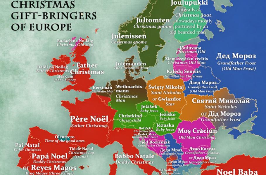 Zcela jiné poměry ale panují severně od českých hranic – v sousedním Polsku a na západní Ukrajině dárky nosí Svatý Mikuláš, Rusko, Bělorusko a východ Ukrajiny okupuje Děda Mráz. Ve Skandinávii úřadují Julemanden, Jultomten a Julenissen, ve Finsku pak vousatý dědeček Joulupukki.