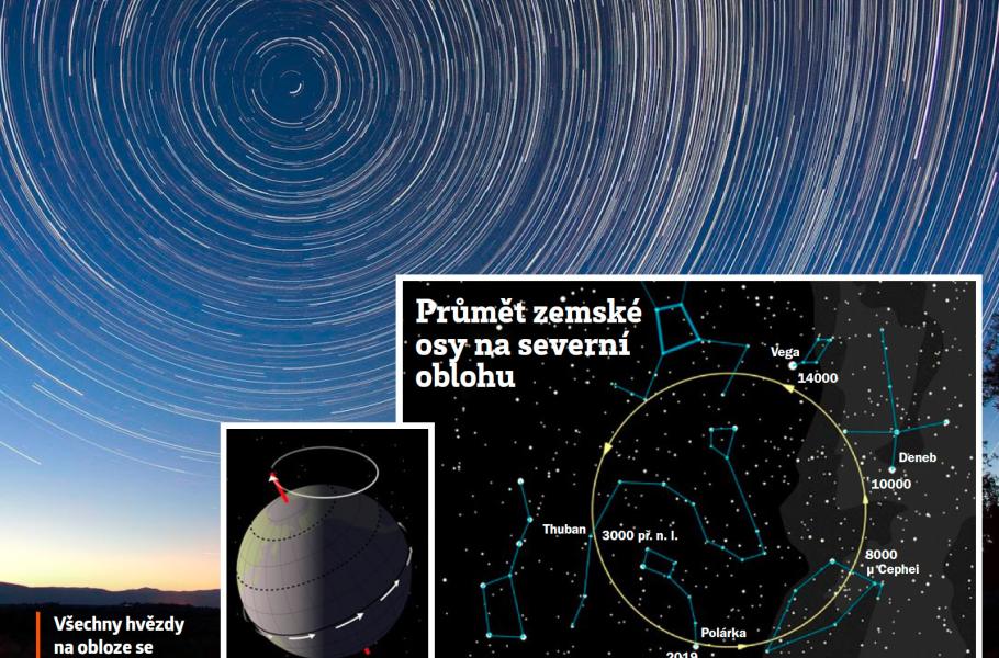Pól se tudíž v průběhu času přesouvá od stálice ke stálici. Aktuálně se sice nachází poblíž Polárky, kterou od jeho skutečné pozice dělí méně než 1°, před pěti tisíci lety však ležel poblíž hvězdy Thuban ze souhvězdí Draka. Kolem roku 10 000 se pak „přiblíží“ k velmi jasnému Denebu (asi 7° od pólu) a okolo roku 13 700 se stane severkou rovněž výrazně jasná Vega (méně než 5°).