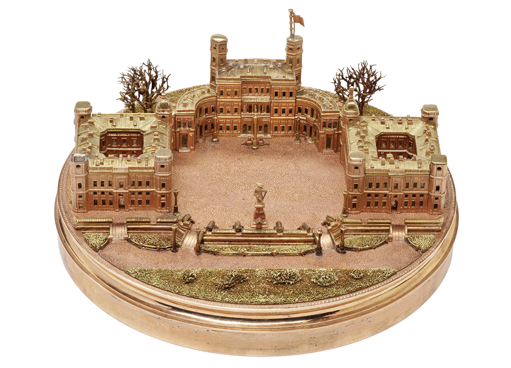 V roce 1901 vyrobili mistři Peter Carl Fabergé (1846–1920) a Michail Jevlampijevič Perchin (1860–1903) ve Fabergého dílně vejce, které daroval Mikuláš II. o Velikonocích své matce, carevně Marii Fjodorovně. V něm se schovávala miniaturní zlatá replika paláce v Gatčině, carevniny zimní rezidence.