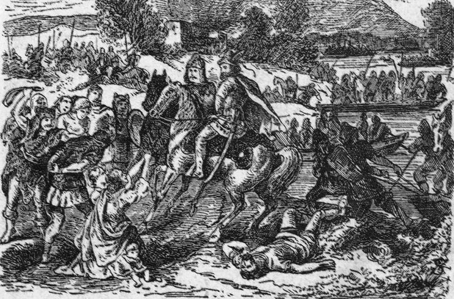 Avaři rabují Balkán na obraze srbského malíře Kosti Mandroviće z konce 19. století. (ilustrace: Wikimedia Commons, Kosta Mandrović, CC0)
