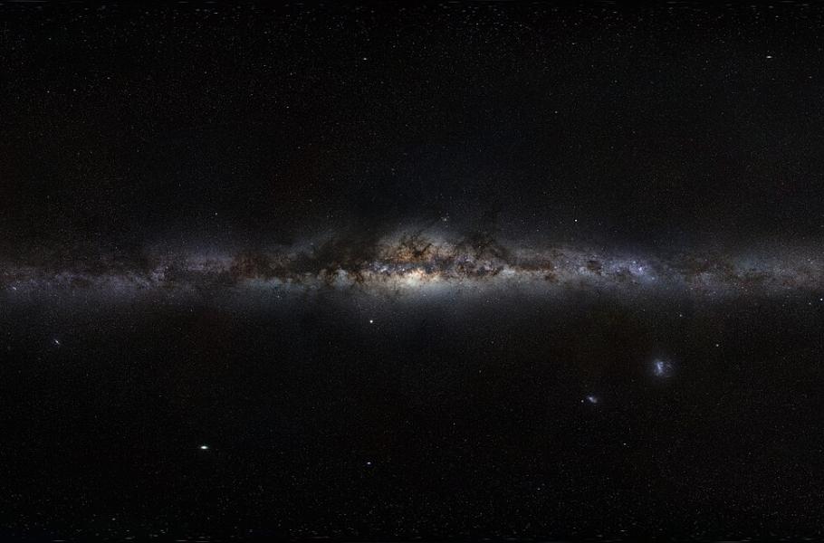 Panoramatický pohled na Mléčnou dráhu, sestavený ze snímků Evropské jižní observatoře. (foto: Wikimedia Commons, ESO/S. Brunier, CC BY-SA 4.0)