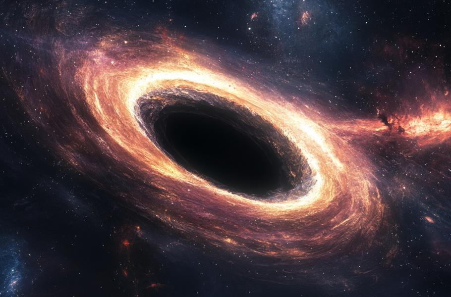 Astronomové objevili stovky „skrytých“ černých děr. Ve skutečnosti jich však mohou existovat miliardy, či dokonce biliony. (ilustrace: Midjourney AI, PDM 1.0)