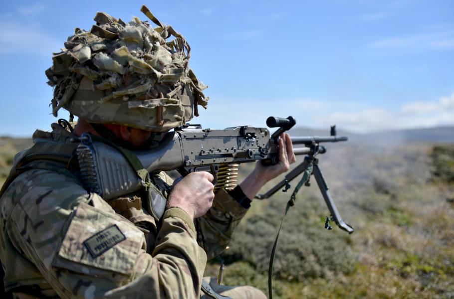 Britský model L7A2 GPMG (General Purpose Machine Gun, univerzální kulomet) v lehké konfiguraci s pažbou a dvojnožkou. (foto: Wikimedia Commons, Si Longworth, OGL 2.0)