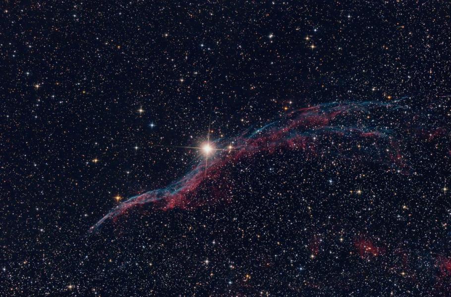 Před deseti tisíci lety se na noční obloze náhle objevilo nové světlo a po několika týdnech zesláblo. Dnes víme, že pocházelo ze supernovy, jež po sobě zanechala rozpínající se mračno trosek známé jako Závojová mlhovina. O poznání méně poetické neformální pojmenování NGC 6960 pak zní Koště čarodějnice.