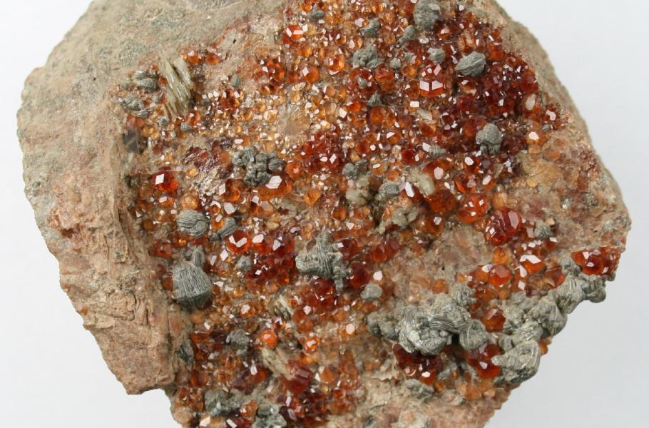 Almandin – červený až hnědý „obecný granát“ většinou s charakteristickým nádechem do fialova