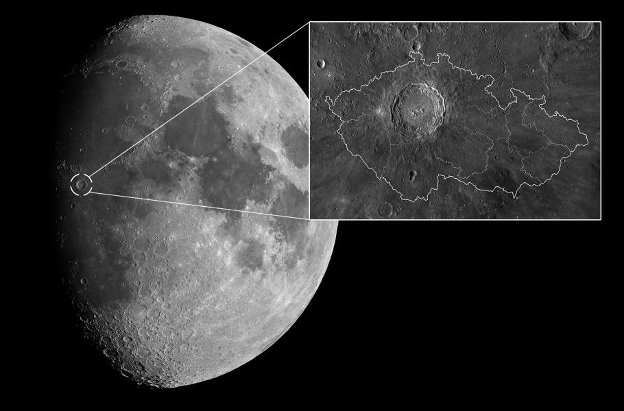 K nejlépe viditelným stopám po dopadu kosmického projektilu na Měsíci patří kráter Koperník. Při pohledu dalekohledem si však jen stěží dokážeme představit jeho skutečné rozměry. Jak by to vypadalo, kdybychom jeho střed umístili třeba do Prahy?