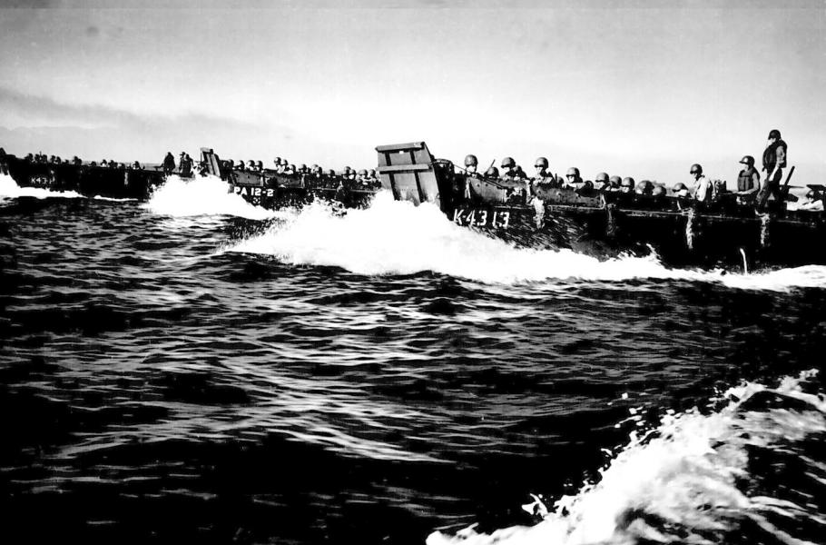 První vyloďovací vlna míří 9. ledna 1945 na pláže Luzonu. (foto: Wikimedia Commons, CC0)