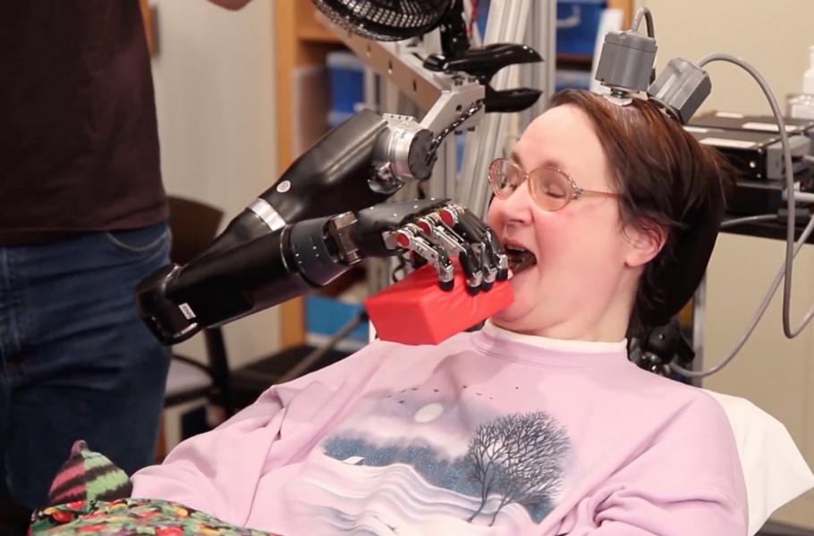 Jedno takové zařízení si vyzkoušela i sedmapadesátiletá Jan Scheuermannová. Kompletně ochrnutá žena dokázala pouhou silou myšlenek hýbat robotickou rukou (a bez asistence si dopřát pořádnou porci čokolády), ale také tímto způsobem pilotovala stíhačku F-35: samozřejmě pouze na simulátoru, přesto velmi zdatně – navzdory tomu, že letadlo nikdy v životě neřídila.
