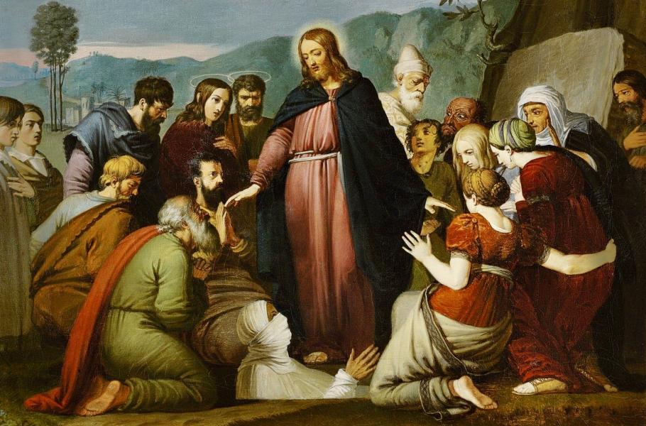Svatý Lazar z Betánie byl podle Bible Ježíšův přítel. Onemocněl a zemřel; když se čtyři dny po smrti k jeho hrobu dostavil Ježíš, zázračně ho vzkřísil z mrtvých. Obraz Vzkříšení Lazara od Johanna Friedricha Overbecka. (Wikimedia Commons, CC0)