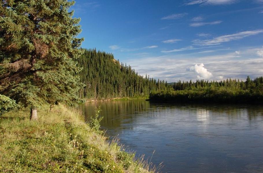 Je skoro půlnoc a krvácející kotouč slunce za chvíli pohltí široce se rozlévající vody mohutného veletoku. Sedíme na jeho vyvýšeném břehu, všude kolem jen les, voda a ticho. Máme za sebou už druhý den na legendární řece Yukon
