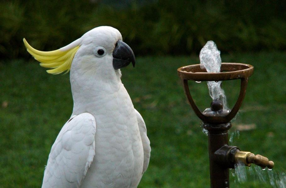 Mazaní papoušci: Kakaduové ze Sydney se naučili pít z fontánek