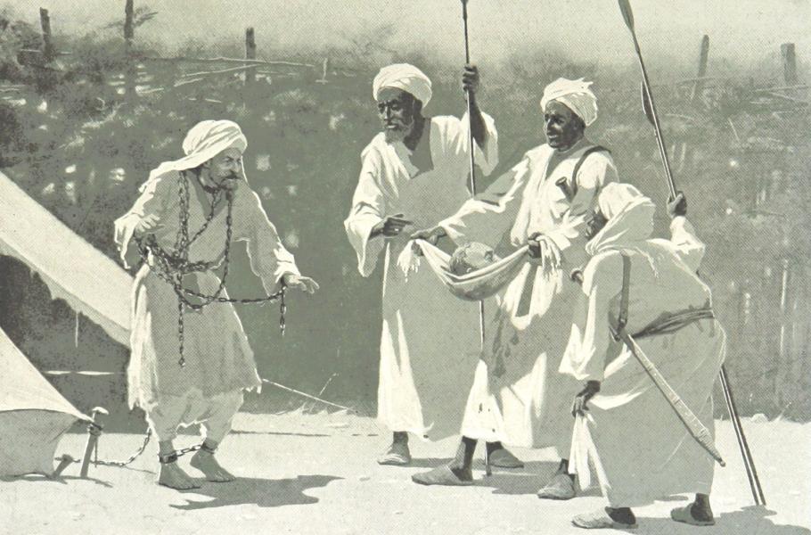 Mahdího vojáci ukazují Gordonovu hlavu spoutanému Gordonovu příteli Rudolfu Carlovi von Slatin. (ilustrace: Wikimedia Commons, Robert Talbot Kelly, PDM 1.0)