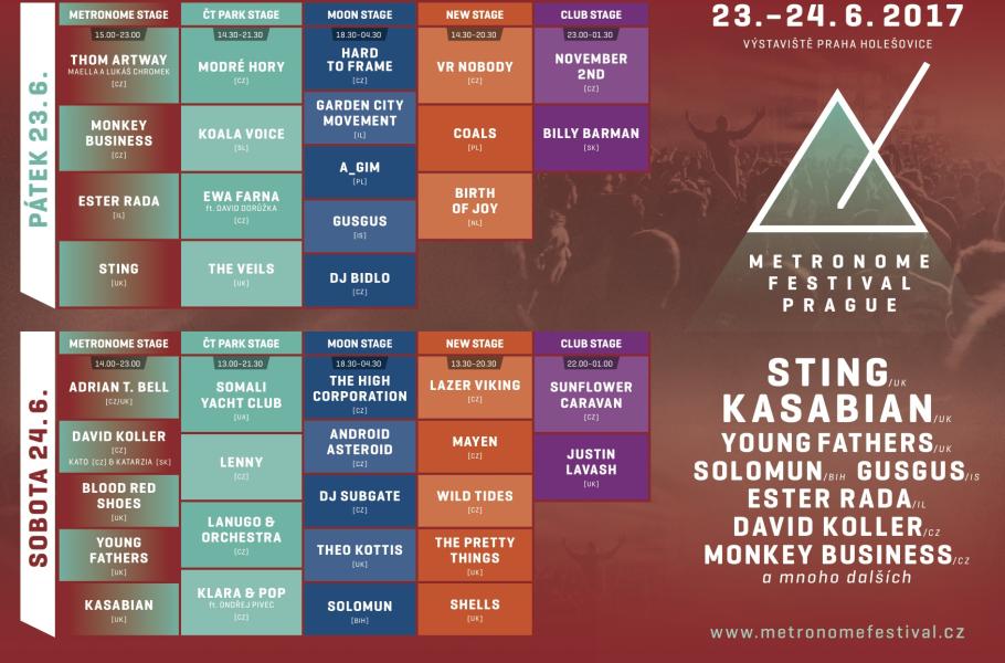 Metronome Festival Prague přináší hudebním fanouškům jiný koncept, než na jaký byli dosud zvyklí. Zahraniční hudba doplněná tím nejlepším z tuzemské scény, která se ovšem představuje v unikátních konstelacích či s jedinečným programem, který diváci nikde jinde neuvidí, navíc pak koncerty programově poskládané tak, že si je fanoušci mohou plnohodnotně užít téměř všechny. Festival navíc nabízí jednodenní vstupenky těm, kteří zde nemohou strávit celý víkend.