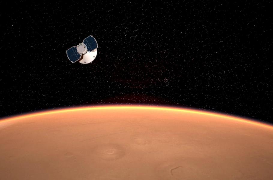 20:47 SEČ – vstup do marsovské atmosféry rychlostí 20 000 kilometrů v hodině.